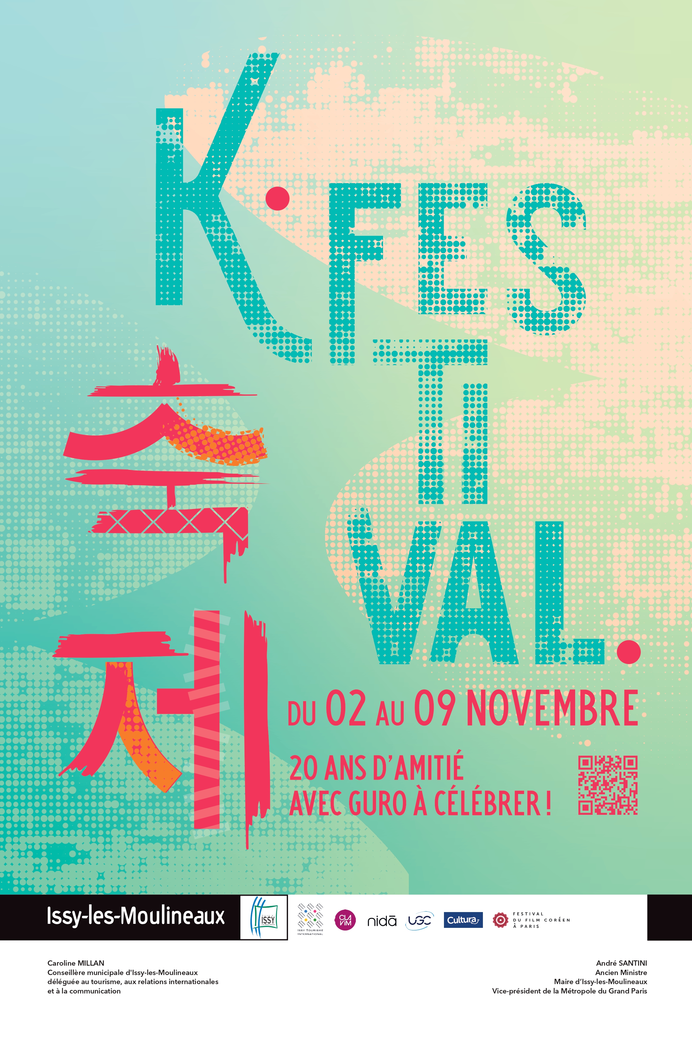 À l’occasion du vingtième anniversaire du jumelage entre les villes de Guro, district de Séoul, et d'Issy-les-Moulineaux, cette dernière organise le K-Festival, un événement dédié à la découverte et à la célébration de la culture coréenne. Du 2 au 9 novembre, Issy-les-Moulineaux se transforme en véritable passerelle culturelle où habitants, visiteurs et artistes échangeront autour de la musique, de la gastronomie, des arts traditionnels et des nouvelles tendances coréennes.